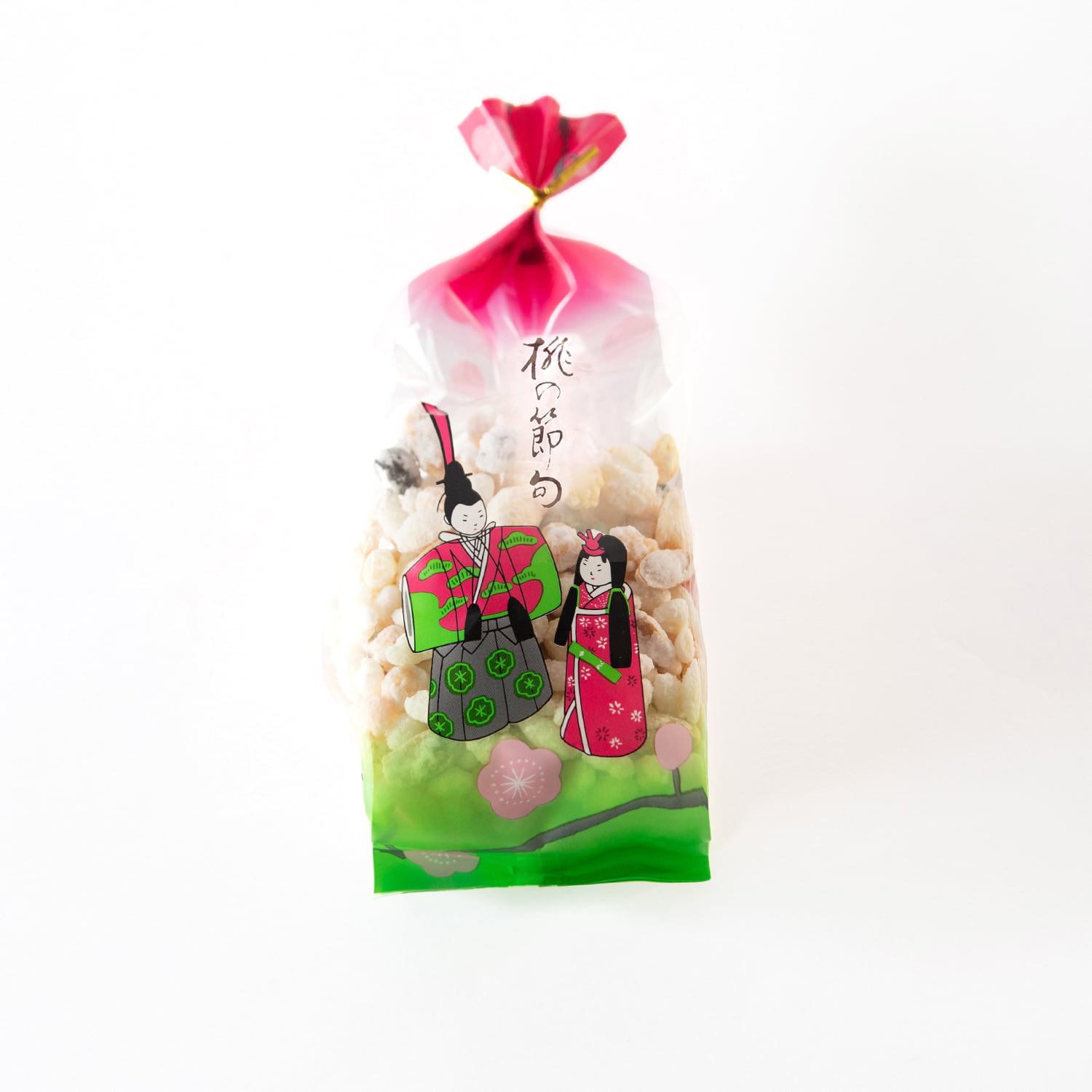 4色のあられ、大豆、黒大豆、落花生などを自社製造で砂糖掛けをしています。サクサクになるまで乾燥させたあられは当店での人気商品です。雛あられを買いに、遠方よりご来店頂くお客様もいらしゃいます。