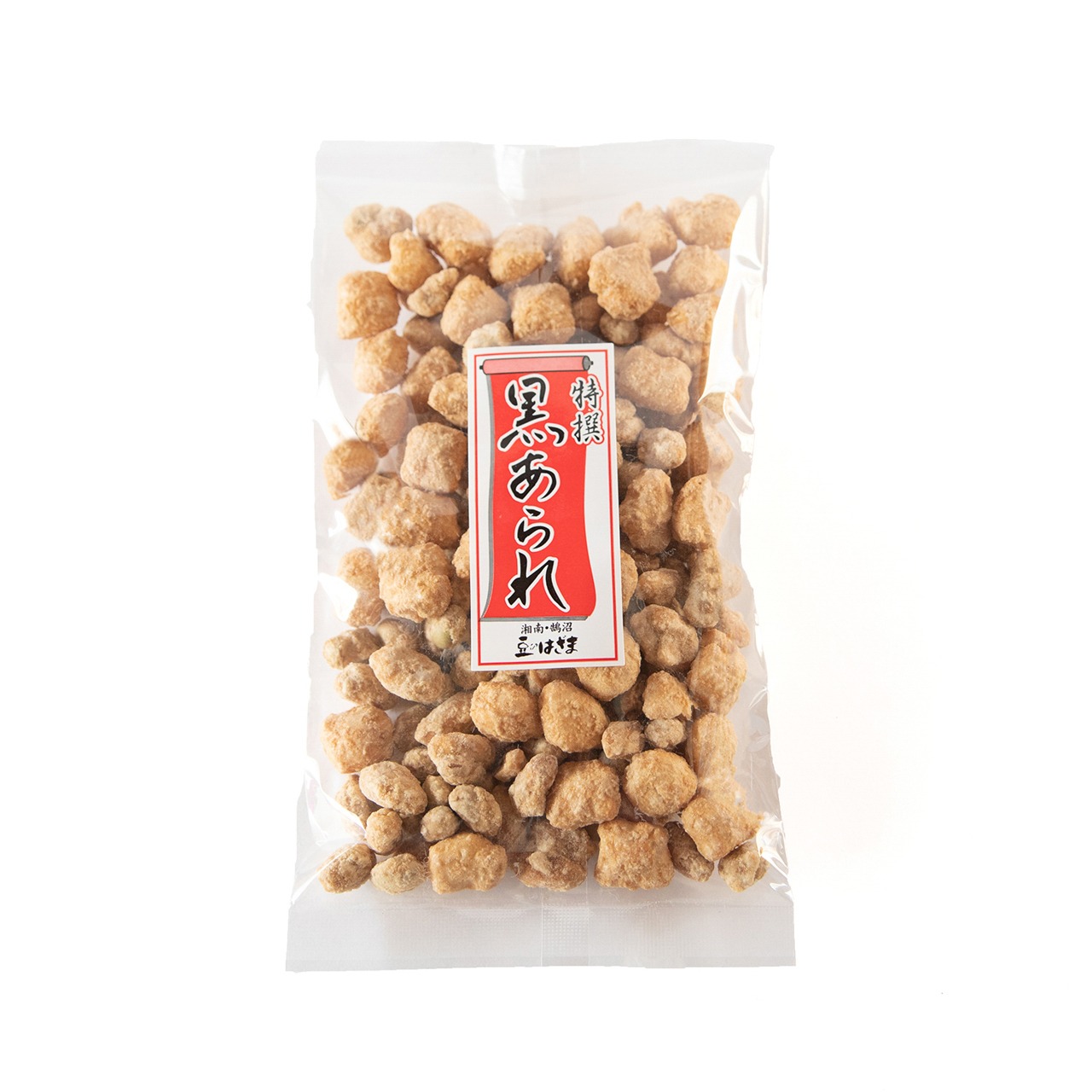 あられ、落花生、大豆を別々に黒糖を掛け混ぜ合わせて作った自社製造の黒あられ。あられはカリカリに乾燥させ、落花生と大豆は掛けたてのサクサク感を大事にしました。雛あられと一緒でこの時期だけの商品です。
